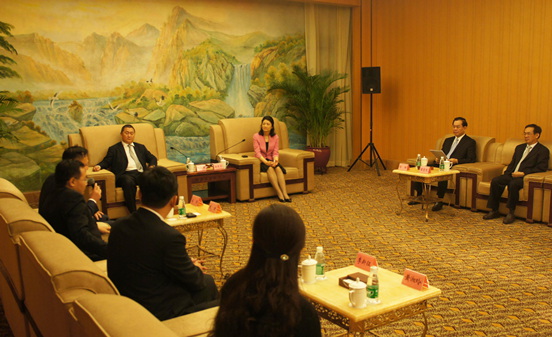 市委書記徐萍華(右起第三)、市長郭鋒(右起第二)與劉志強(右起第四)會見投資客商