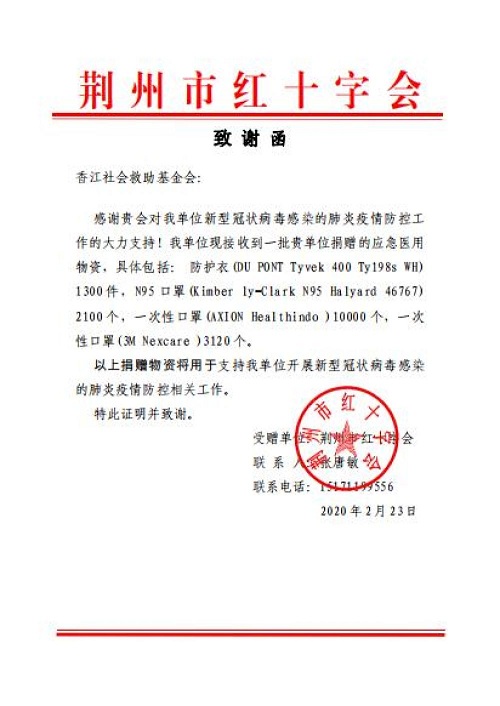 本次援助荊州抗疫醫(yī)療物資包括1300件醫(yī)用防護(hù)服、2100個(gè)N95口罩、3120個(gè)3M口罩、10000個(gè)一次性醫(yī)用口罩,該批物資也成為香江社會(huì)救助基金會(huì)抗疫期間捐贈(zèng)的第四批醫(yī)療物資。